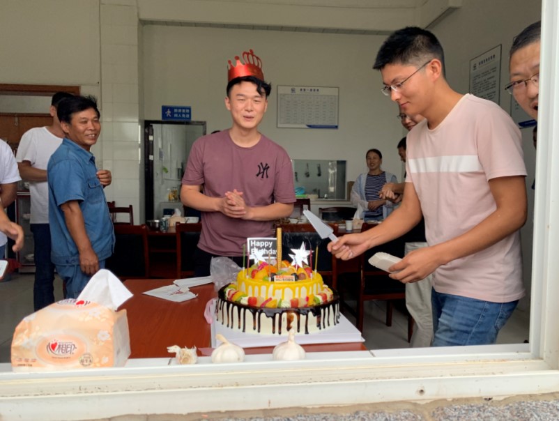 7月19日,在武漢北湖項目部,各色的彩帶裝點著員工食堂,所有員工歡聚一起,為新老員工舉辦集體生日與迎新活動。大家為二季度過生日的員工與實習生準備了豐盛的飯菜和生日蛋糕,笑容映照在每一個人的臉上,溫暖縈繞在每一個人的心中?!拔覀冸m然來自全國各地,但在這里感受到了家
