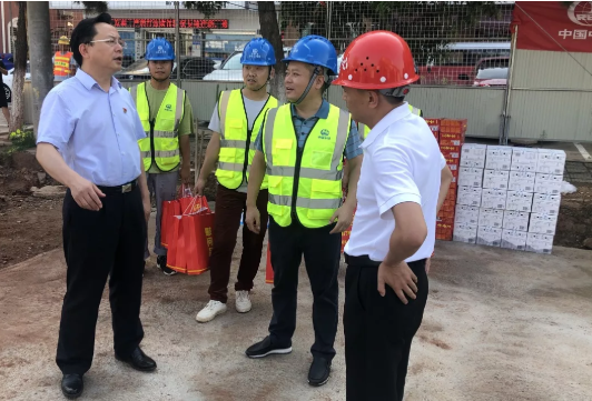 ?8月12日,荊門市委副書記、市長孫兵一行到公司承建的荊門金龍泉大道改造工程檢查指導工作并慰問一線職工,為他們送去關懷和防暑降溫物品。荊門市副市長陳實、市政府秘書長何平等陪同。