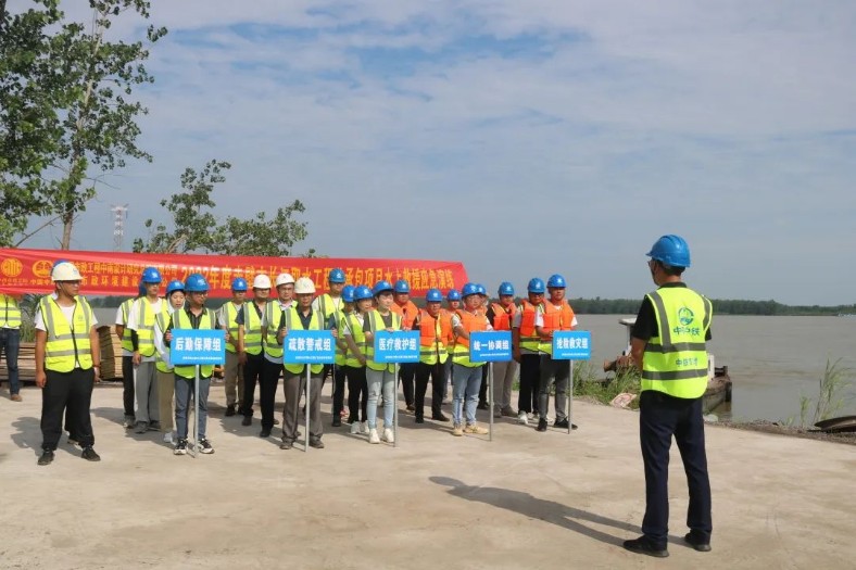 6月25日,赤壁市長(zhǎng)江取水工程工程總承包項(xiàng)目部開展水上應(yīng)急救援演練。...
