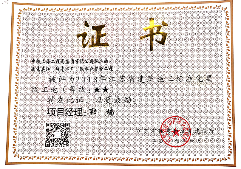 近日,南京夾江(城南水廠)取水口整合工程榮獲“江蘇省建筑施工標(biāo)準(zhǔn)化星級(jí)工地”榮譽(yù)稱(chēng)號(hào),這是該項(xiàng)目繼榮獲“南京市建筑施工市級(jí)標(biāo)準(zhǔn)化文明示范工地”后又一榮譽(yù)。...