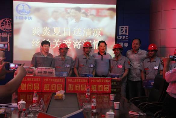 當(dāng)天上午,王主席一行將防暑降溫飲料、食品逐一發(fā)放到職工手中,并代表集團(tuán)公司工會(huì)對(duì)奮戰(zhàn)在建設(shè)一線的職民工們表示了由衷的感謝,提醒職工們要時(shí)刻注意安全,關(guān)切詢問他們的工作、生活情況,并希望大家健康生活,舒心工作,為上海局的發(fā)展多做貢獻(xiàn)。