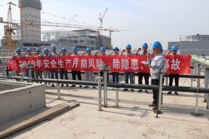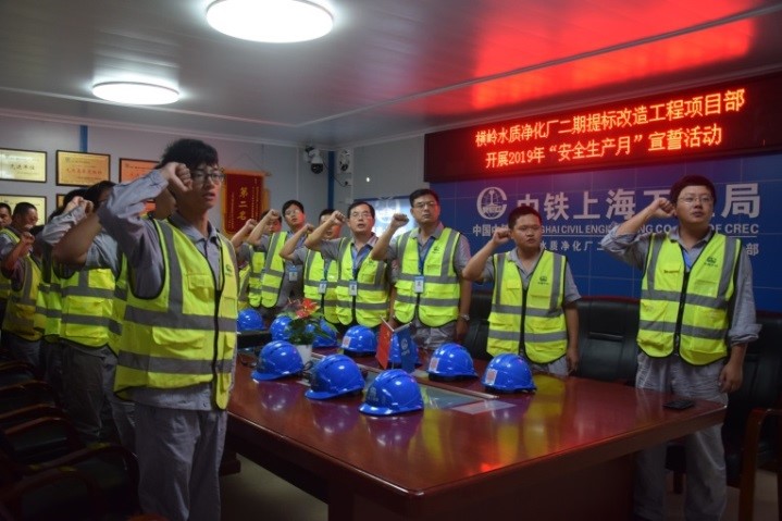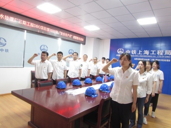 合肥蔡田鋪污水處理廠三期工程:組織全體員工進(jìn)行2019年“安全生產(chǎn)月”集體宣誓簽名活動(dòng)。合肥蔡田鋪項(xiàng)目部目前處于土方施工階段,6月份將進(jìn)入施工大干期間,安全生產(chǎn)是項(xiàng)目能夠按期完在的必要條件。為確保工程順利施工、按期完工,項(xiàng)目部以“安全生產(chǎn)月”宣誓為契機(jī),引導(dǎo)全體職工把安全生產(chǎn)、質(zhì)量管理放在重要位置,進(jìn)一步提升安全生產(chǎn)責(zé)任意識(shí)。(朱天娥)
