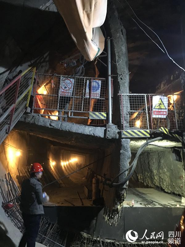 今日下午,記者來到西南交大旁邊的地鐵施工工地,在工作人員的帶領(lǐng)下,下到地下18米的地鐵施工現(xiàn)場(chǎng)。記者看到,隧道洞口被一分為六,隧道內(nèi)約20米深處傳來了施工人員作業(yè)的聲音。