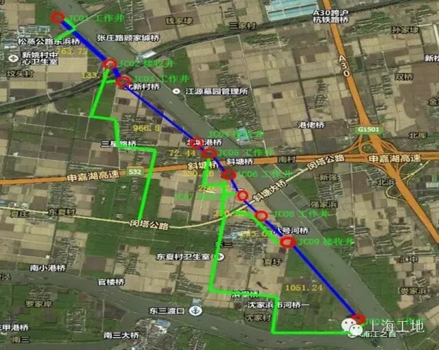現(xiàn)場負(fù)責(zé)人告訴工地君黃浦江上游水源地連通管工程C5標(biāo)自松江泵站至金山分水點(diǎn)段的JC-01井到JC-10井,包括10座頂管井及9個頂進(jìn)區(qū)段,標(biāo)段線路長度4237.26m,總造價2.05億元。