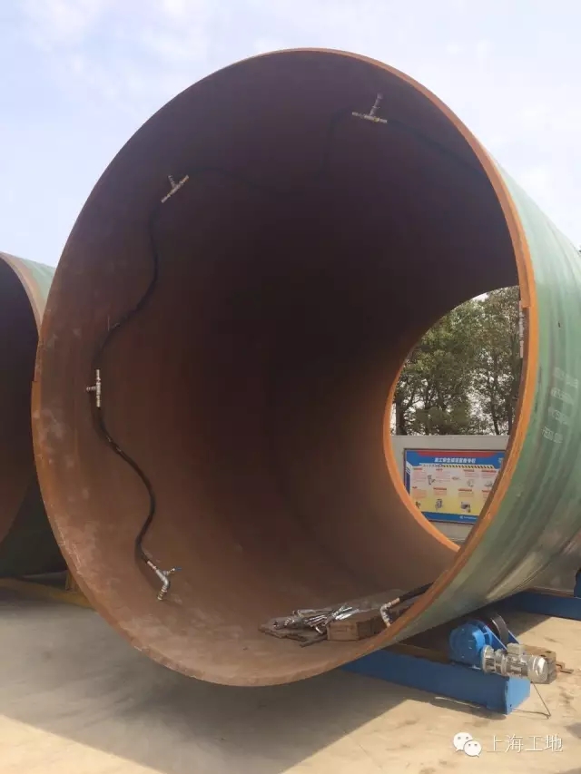 工程的區(qū)間最長距離1064米,今天下井推送的頂管長度為270.39m,管徑為Φ3800,管道中心標(biāo)高為-8.000m,采用Q235B鋼板直縫埋弧焊接,鋼管鋼板厚度為36mm。由JC08#工作井頂向JC07#接收井推送,這段區(qū)間距離為200多米,每天大約推送20米左右。