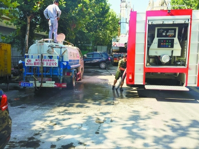 在管道內(nèi)淤泥疏松后,需大量的水對(duì)管道內(nèi)進(jìn)行沖洗,為保證用水,市消防局安排了一輛消防車專門支持管道沖洗。據(jù)悉,消防車一次能提供15立方米的水,可以使用半小時(shí)。但工地附近無消防栓,每次加水均要回到消防隊(duì),導(dǎo)致施工難度大、功效低。