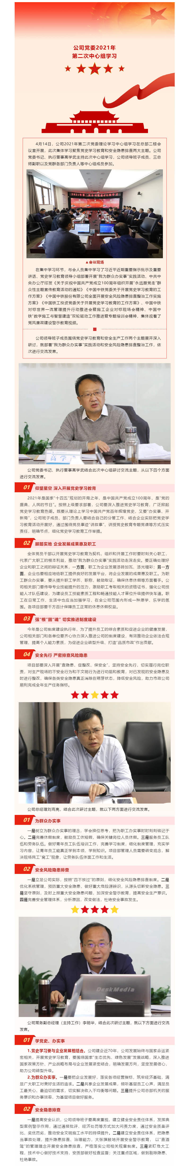 公司黨委理論學(xué)習(xí)中心組舉辦黨史學(xué)習(xí)教育和安全隱患排查集體學(xué)習(xí)
