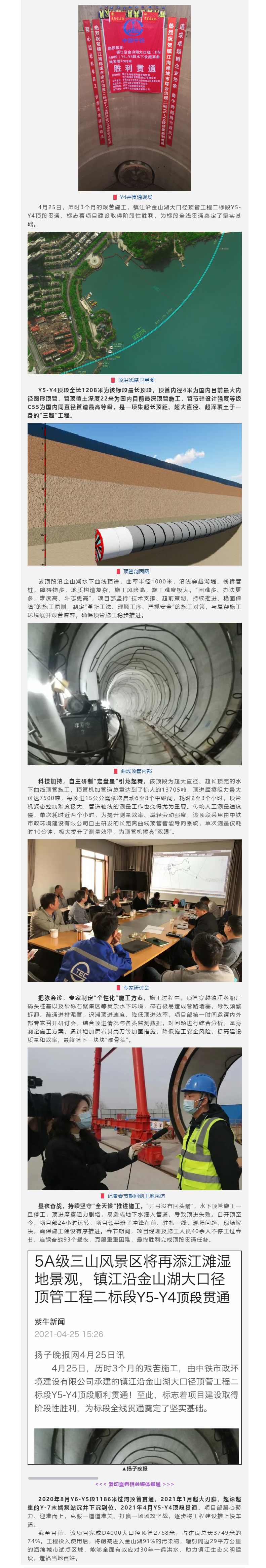 鎮(zhèn)江沿金山湖大口徑頂管工程二標(biāo)段Y5-Y4頂段勝利貫通